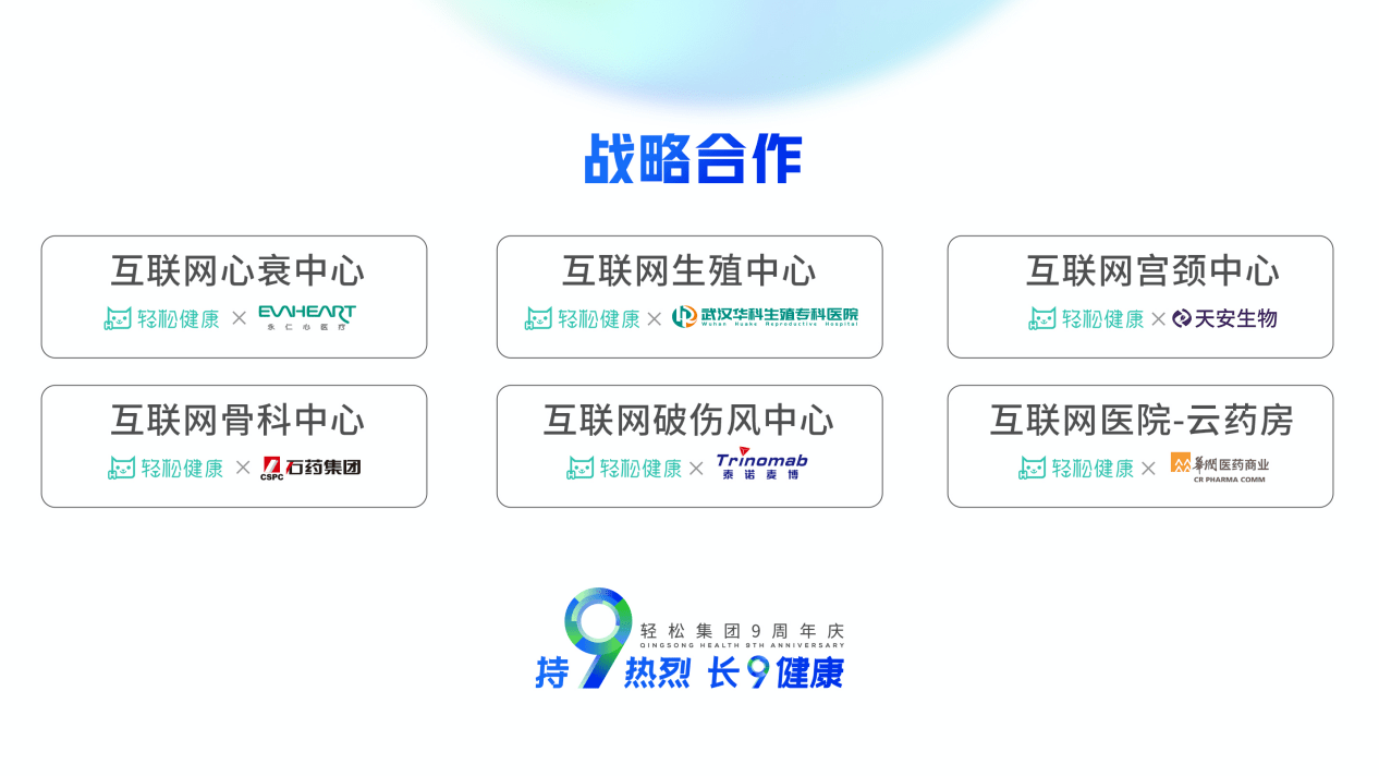 在轻松集团9周年战略发布会上,公司宣布与头部企业发布战略合作,强强联合深耕大健康。在平台战略合作上,轻松集团宣布与京东健康达成会员体系融合合作,实现健康管理服务升级;在创新产品研发上,轻松集团、鹰瞳、众惠相互保险三方合作首发“心脑血管筛查保险”智能核保创新产品。