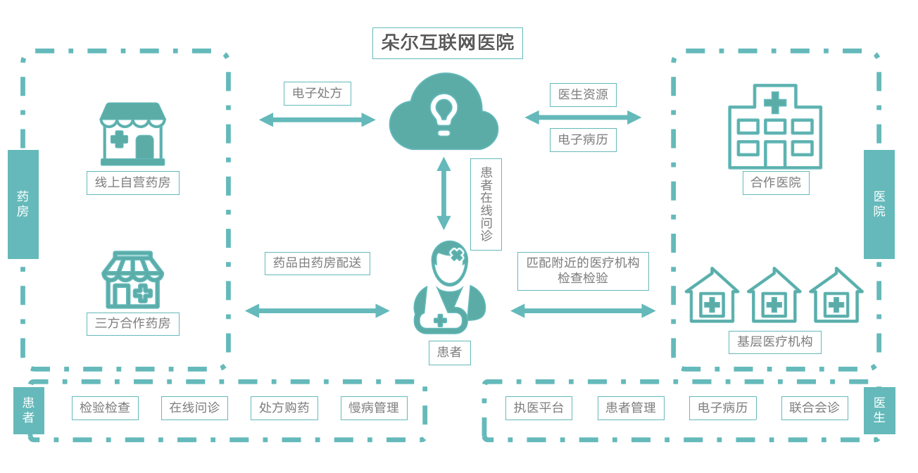 在落地层面,通过衔接医院资源,朵尔互联网医院已经与1000+医院项目对接延展,积极构建了以单病种为特色,以医联体业务联动为创新模式的新型互联网医院,实现医疗资源的优化配置和健康服务的体系搭建。