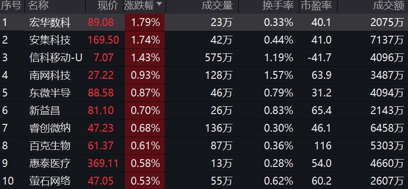 科创100ETF(588190)紧密跟踪上证科创板100指数,截至2023年9月21日10:41,指数成份股中,宏华数科上涨1.79%,安集科技上涨1.74%,信科移动-U、南网科技等个股跟涨。