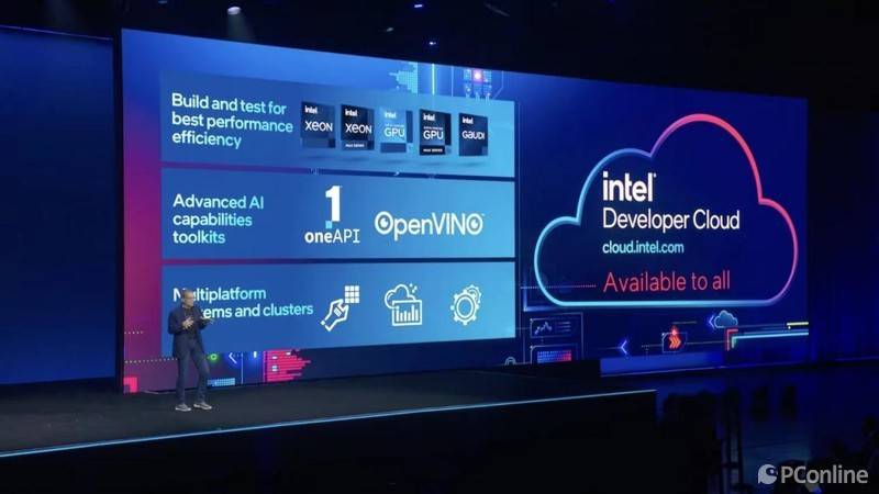 会议期间,英特尔展示了旗下AI硬件产品线,并预告将发布首款集成NPU神经网络处理单元的新款酷睿Ultra处理器。他们还介绍了AI PC的实际应用,包括智能提醒、自动场景分隔和内容提炼等功能。英特尔的Developer Cloud开发者云平台也已经全面上线,帮助开发者利用英特尔最新软硬件进行AI开发。
