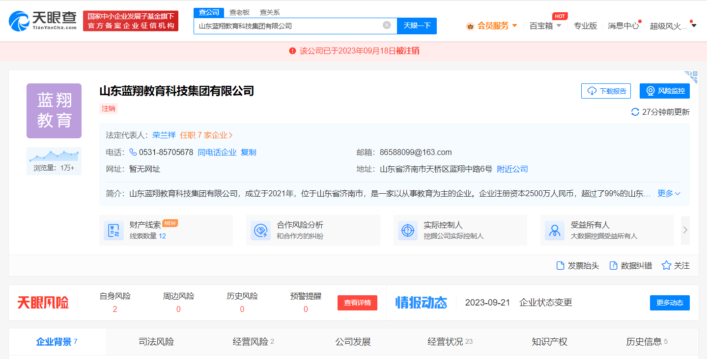 原标题:山东蓝翔教育科技集团注销