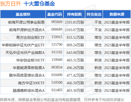 重仓东方日升的前十大公募基金请见下表: