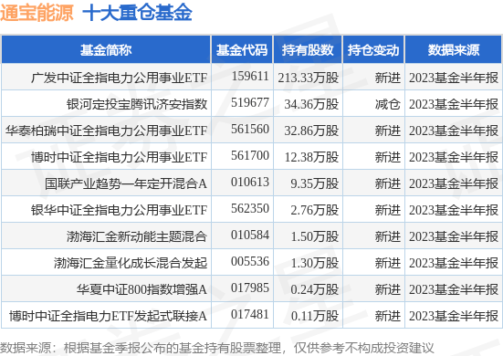 重仓通宝能源的前十大公募基金请见下表: