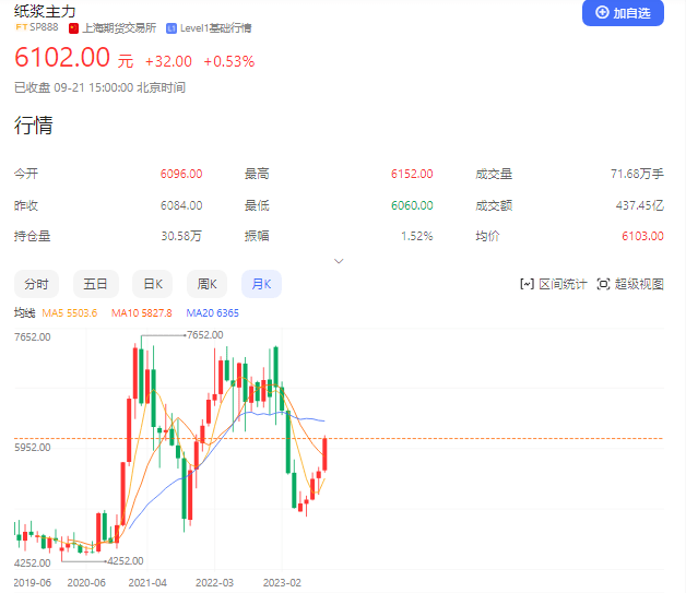 据百度股市通数据,2020年10月30日时纸浆价格为4530元,最高时一度为7652元,截至9月21日收盘纸浆价格虽有下降,但也为6102元。