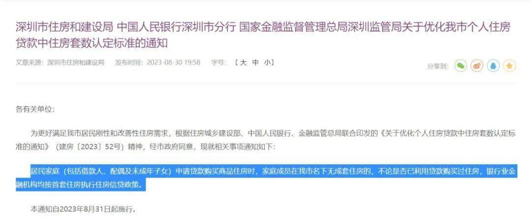 深圳市住房和建设局此前发文称,深圳自8月31日起实施认房不认贷政策,是为了更好地满足深圳市居民刚性和改善性住房需求。