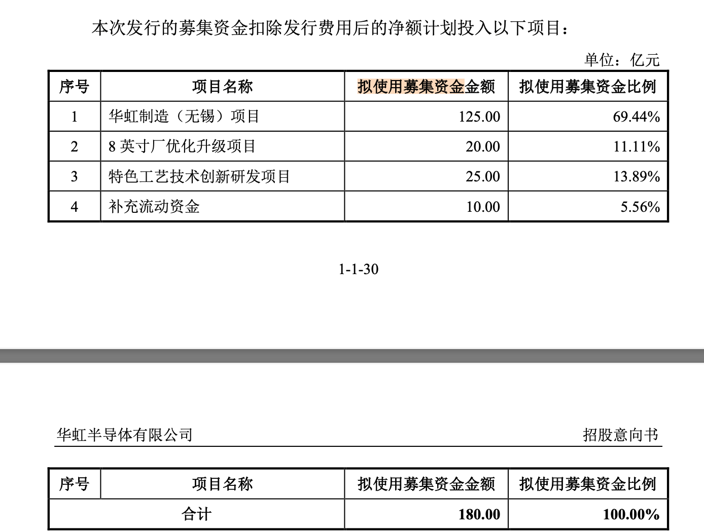 华虹制造(无锡)项目正是华虹公司此前IPO的募资投向之一,当时招股书称该项目拟使用募资金额125亿元,8英寸厂优化升级项目、特色工艺技术创新研发项目及补充流动资金合计拟使用募资额55亿元。