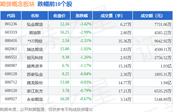 9月21日期货概念板块较上一交易日下跌0.53%,弘业期货领跌。当日上证指数报收于3084.7,下跌0.77%。深证成指报收于9981.67,下跌0.9%。期货概念板块个股涨跌见下表: