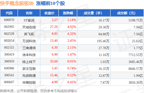从资金流向上来看,当日快手概念股板块主力资金净流出3.72亿元,游资资金净流出5065.87万元,散户资金净流入4.23亿元。快手概念股板块个股资金流向见下表: