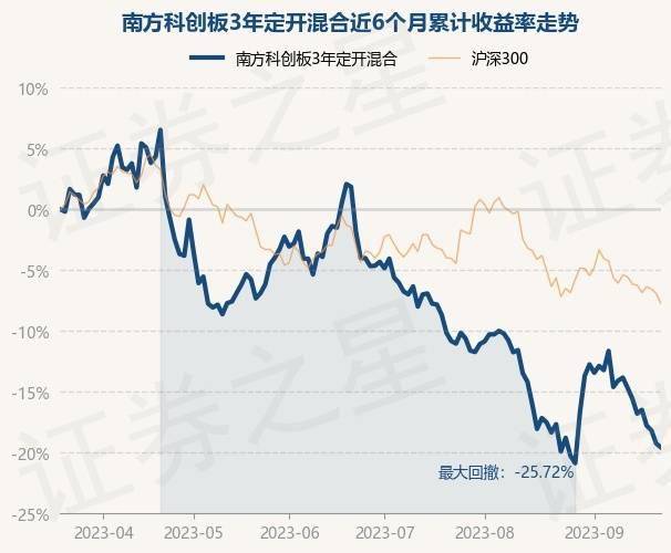 9月21日,南方科创板3年定开混合最新单位净值为0.641元,累计净值为0.676元,较前一交易日下跌0.39%。历史数据显示该基金近1个月下跌1.51%,近3个月下跌18.08%,近6个月下跌19.57%,近1年下跌26.3%。该基金近6个月的累计收益率走势如下图: