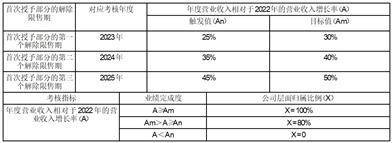 首次授予的限制性股票各年度业绩考核目标如下表所示: