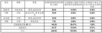 2、上述任何一名激励对象通过全部有效的股权激励计划获授的本公司股票均未超过本期激励计划草案公告时公司股本总额的1.00%。公司全部有效的激励计划所涉及的标的股票总数累计不超过本期激励计划草案公告时公司股本总额的10.00%;