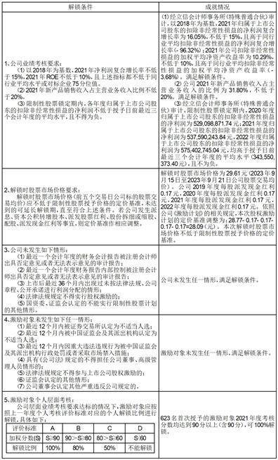 12、2023年9月21日,公司第七届董事会第十一次会议和第七届监事会第十次会议审议通过了《关于2019年限制性股票激励计划预留授予的限制性股票第一个解除限售期解锁条件成就的议案》《关于2019年限制性股票激励计划首次授予的限制性股票第二个解除限售期解锁条件成就的议案》。根据公司《2019年限制性股票激励计划(草案)》的规定,董事会同意对首次授予的623名符合解锁条件的激励对象在第二个解除限售期解锁,可解锁的限制性股票数量为6,324,000股。