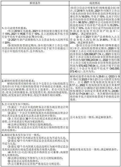 12、2023年9月21日,公司第七届董事会第十一次会议和第七届监事会第十次会议审议通过了《关于2019年限制性股票激励计划预留授予的限制性股票第一个解除限售期解锁条件成就的议案》《关于2019年限制性股票激励计划首次授予的限制性股票第二个解除限售期解锁条件成就的议案》。根据公司《2019年限制性股票激励计划(草案)》的规定,董事会同意对预留授予的176名符合解锁条件的激励对象在第一个解除限售期解锁,可解锁的限制性股票数量为997,500股。