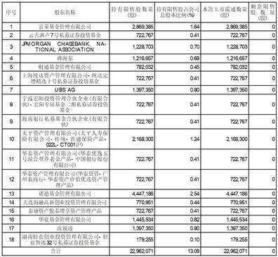 本次上市流通的限售股属于公司向特定对象发行股票形成,限售期为自公司向特定对象发行结束之日起6个月,涉及限售股股东18名(对应78个证券账户),对应的数量为22,962,071股(因公司实施2022年度权益分派,本次上市流通的限售股数量由16,401,479股变动为22,962,071股),占公司目前股本总数的13.09%。本次限售股上市流通日期为2023年10月9日。