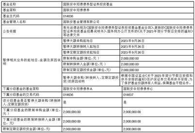 国联安中短债债券型证券投资基金2023年“国庆”假期前暂停大额申购、转换转入及定期定额投资业务的公告