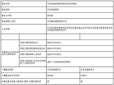 (1)华宝基金管理有限公司(以下简称“本基金管理人”)已于2023年9月14日起将华宝宝盛纯债债券型证券投资基金(以下简称“本基金”)的单日单个基金账户累计申购(含定投及转换转入)金额上限设置为100万元(含)。