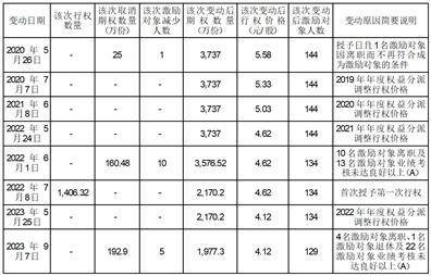 3、2023年9月6日,公司召开第八届董事会2023年第四次临时会议和第八届监事会2023年第三次临时会议,审议通过了《关于调整股票期权激励计划首次授予股票期权行权价格的议案》,因实施2022年年度权益分派方案,公司将首次授予的行权价格由4.62元/股调整为4.12元/股;审议通过了《关于股票期权激励计划部分股票期权注销的议案》,同意因首次授予激励对象离职、退休及业绩考核未达良好以上(A)对激励对象及行权数量进行相应调整。经调整,首次授予股票期权的激励对象由134人调整为129人,对应激励对象的首次授予获授股票期权数量由3,617万份调整为3,436万份,已获授但尚未行权的股票期权数量调整为1,977.3万份。
