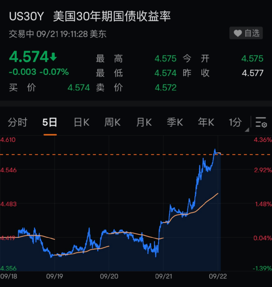 30年期国债收益率上涨超过10个基点至4.55%,创2011年4月以来最高水平。10年期国债收益率逼近2007年以来高点4.5%,2年期国债收益率最高上涨至5.1202%,也创16年来新高。