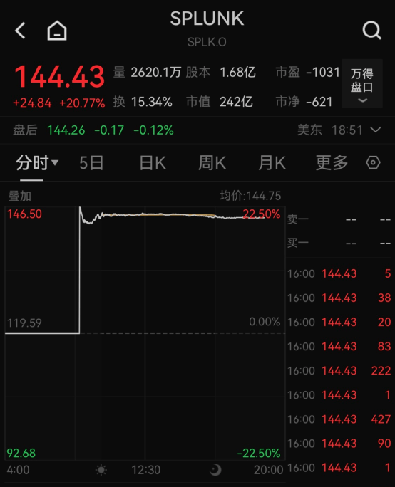 此举对思科和Splunk的股价均造成了不小的震动,其中Splunk涨超20%,而思科则下跌逾4%。