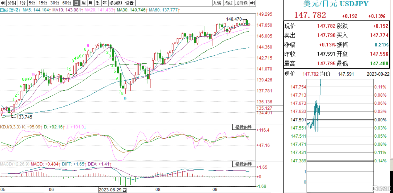 日美国债利差加大,日元持续承压,最新报147.78。