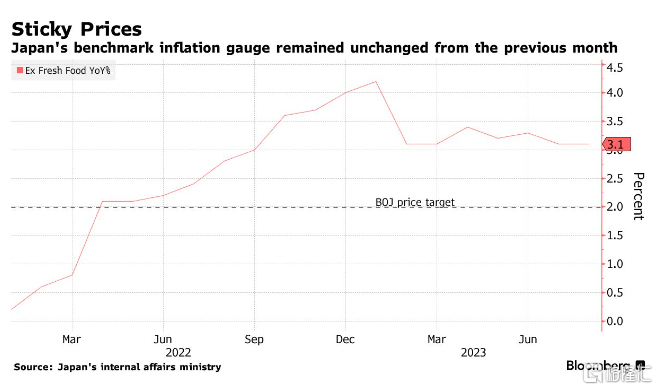 8月,日本剔除新鲜食品后的核心CPI同比增长3.1%,预期3%,前值3.1%,连续第17个月高于央行2%的目标,这表明这个世界第三大经济体的价格压力正在扩大。
