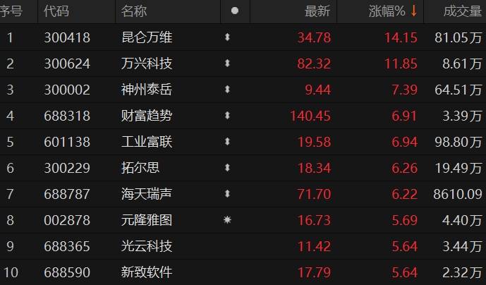 原标题:ChatGPT概念股震荡走高 昆仑万维涨超14%