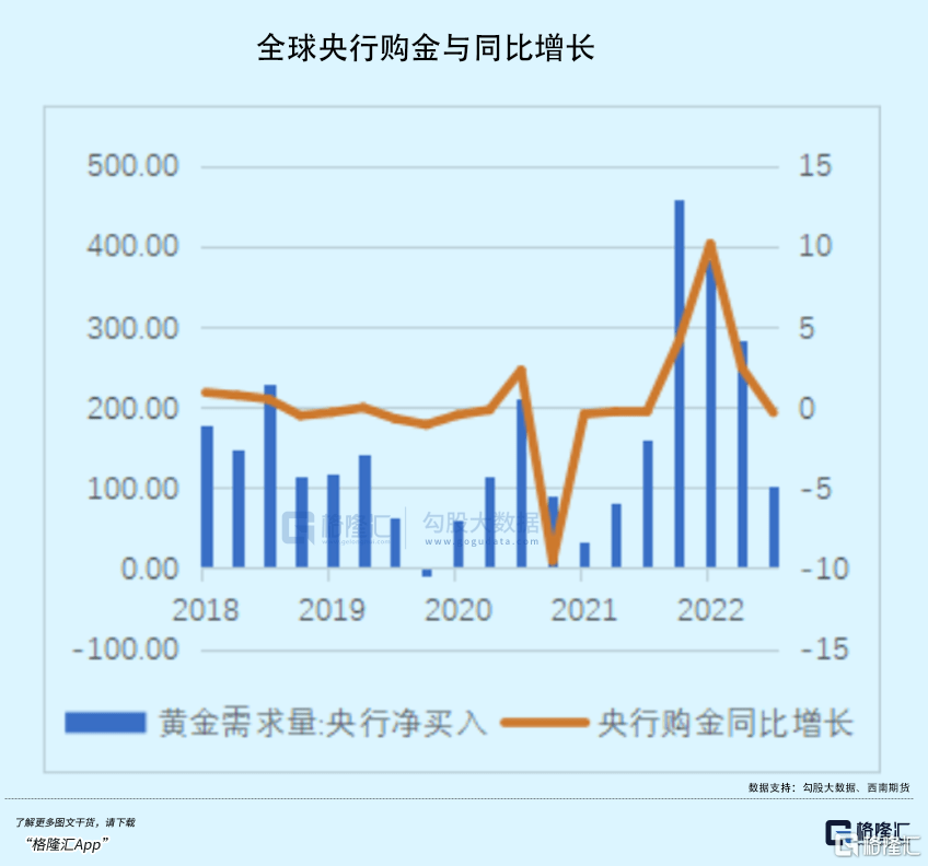除了以上定价逻辑外,全球央行持续爆买黄金亦成为不可忽略的重要力量。2022年,全球央行以1136吨的净购金量创下历史纪录。今年,这种热潮继续,整个上半年达到了创纪录的387吨。