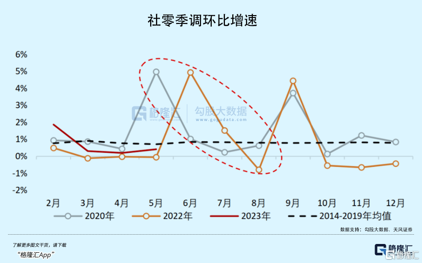 2020年3-5月、2022年5-6月,房地产销售、社零消费均有一个明显超季节性表现。而后的2020年7月、2022年7月,两者表现双双回落,再到2020年8月、2022-8-9月又重新回到季节性正常表现。