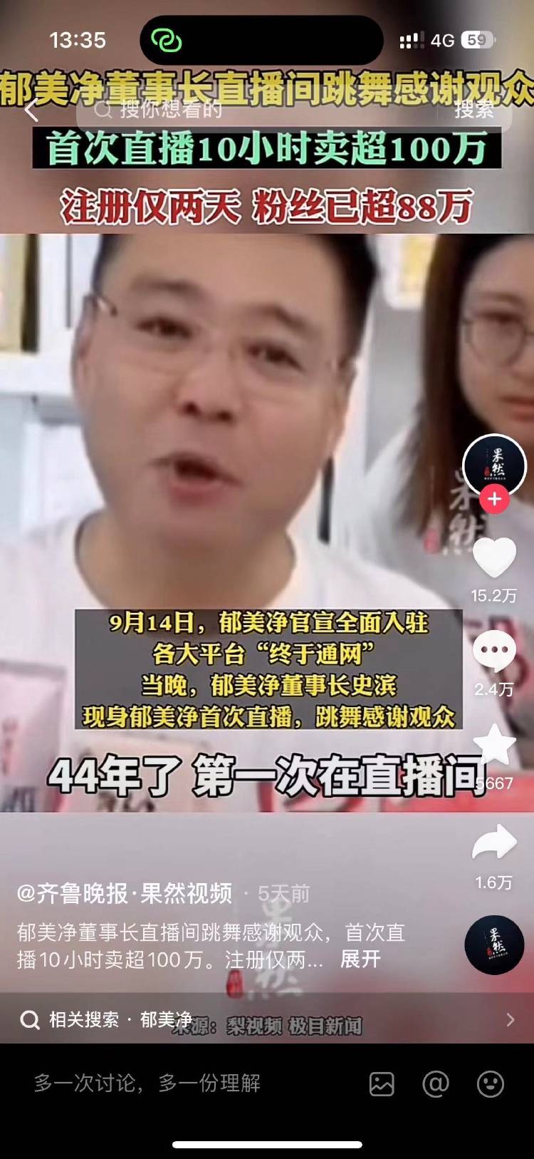 品牌郁美净于9月14日“连夜通网”注册抖音,郁美净在官方微博发文称:“别催了别催了,连夜通网了,毕竟44岁了,不太会玩大家应该不会怪我吧,小红书、抖音全面入驻。”当天晚上,郁美净董事长史滨现身郁美净首次直播,在直播间跳舞感谢观众。一时间,“郁美净董事长直播间跳舞”这一词条登顶热搜。
