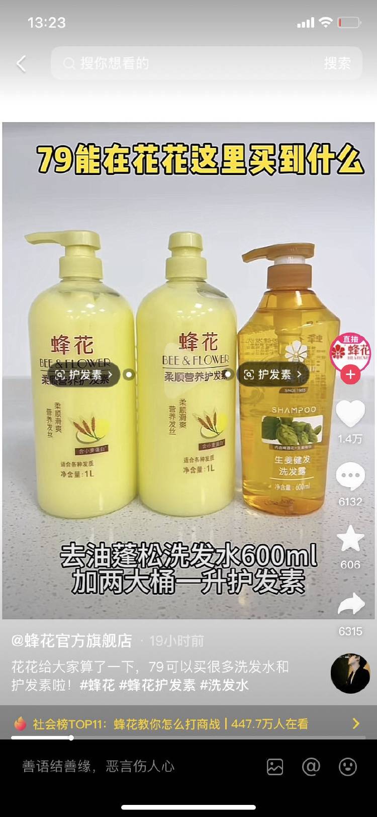 在“蜂花效应”下,不少国货也纷纷加入了这场大戏。以味精为主要产品的莲花、运动品牌鸿星尔克也纷纷上线了79元套餐。鸿星尔克还与国货品牌联动,让主播直播洗头,并卖起了蜂花、白象等国货产品。
