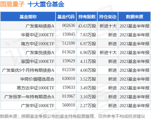 重仓国盾量子的前十大公募基金请见下表: