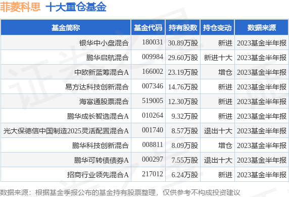 重仓菲菱科思的前十大公募基金请见下表: