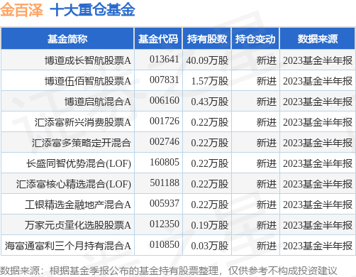 根据2023基金半年报公募基金重仓股数据,重仓该股的公募基金共55家,其中持有数量最多的公募基金为博道成长智航股票A。博道成长智航股票A目前规模为11.61亿元,最新净值0.8614(9月21日),较上一交易日下跌0.38%,近一年上涨2.43%。该公募基金现任基金经理为杨梦。杨梦在任的基金产品包括:博道启航混合A,管理时间为2018年8月10日至今,期间收益率为64.04%;博道中证500增强A,管理时间为2019年1月3日至今,期间收益率为88.66%;博道沪深300指数增强A,管理时间为2019年4月26日至今,期间收益率为26.82%;博道远航混合A,管理时间为2019年4月30日至今,期间收益率为40.53%。