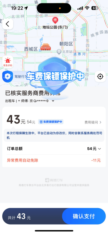 当乘客自行发现车费疑问时,并在高德地图App内反馈时,车费保镖能实现秒级判责,对不合理车费秒级赔付,对费用正常的订单也会秒级给出费用说明。