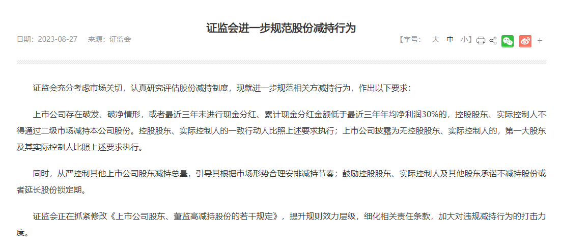 为活跃资本市场,提振市场信心,证监会近期发布了政策“组合拳”,其中股份减持便是其中之一。