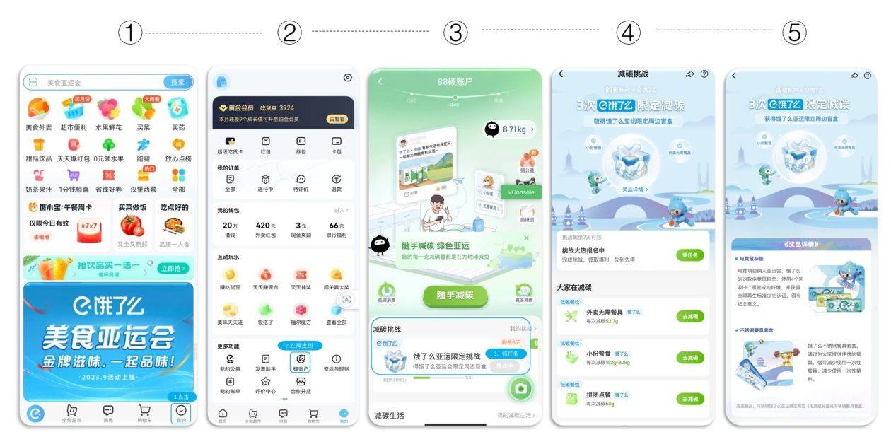 为引导更多用户养成绿色点餐的好习惯,饿了么额外制作了总计超过6000份亚运周边给全国用户免费兑换,只要在饿了么碳账户内参与减碳任务即可获取,先到先得。9月23日起,打开饿了么App,按照“我的——碳账户——任务挑战”链路便可参与第一周的挑战,只要完成“无需餐具”“小份餐”等任务便可。