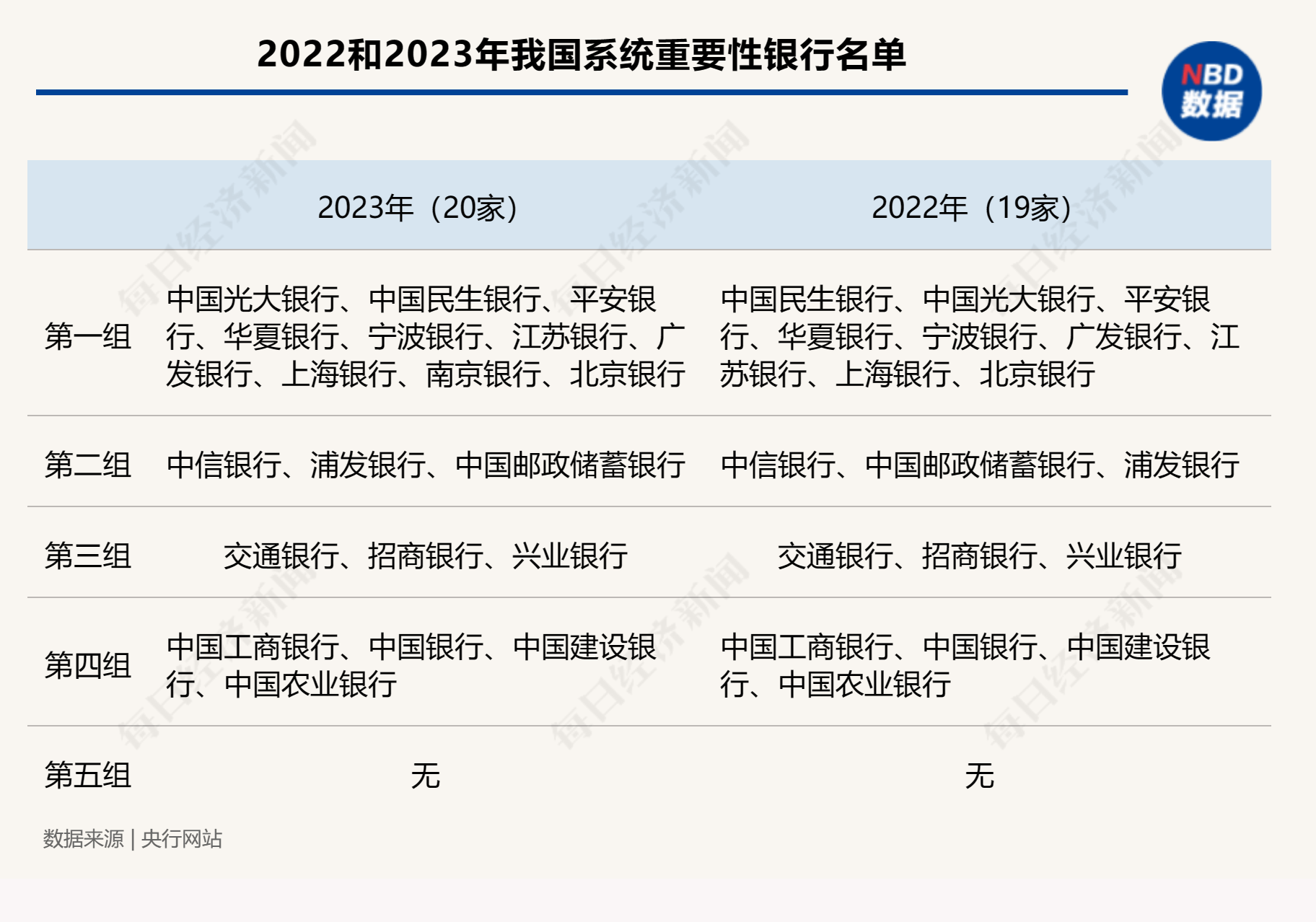 与2022年名单相比,第一组和第二组银行在排序上有一些小变化,比如第二组中浦发银行排在邮储银行之前,第三组和第四组排序无变化。除了南京银行新进入,其他各组没有跨组的变化。