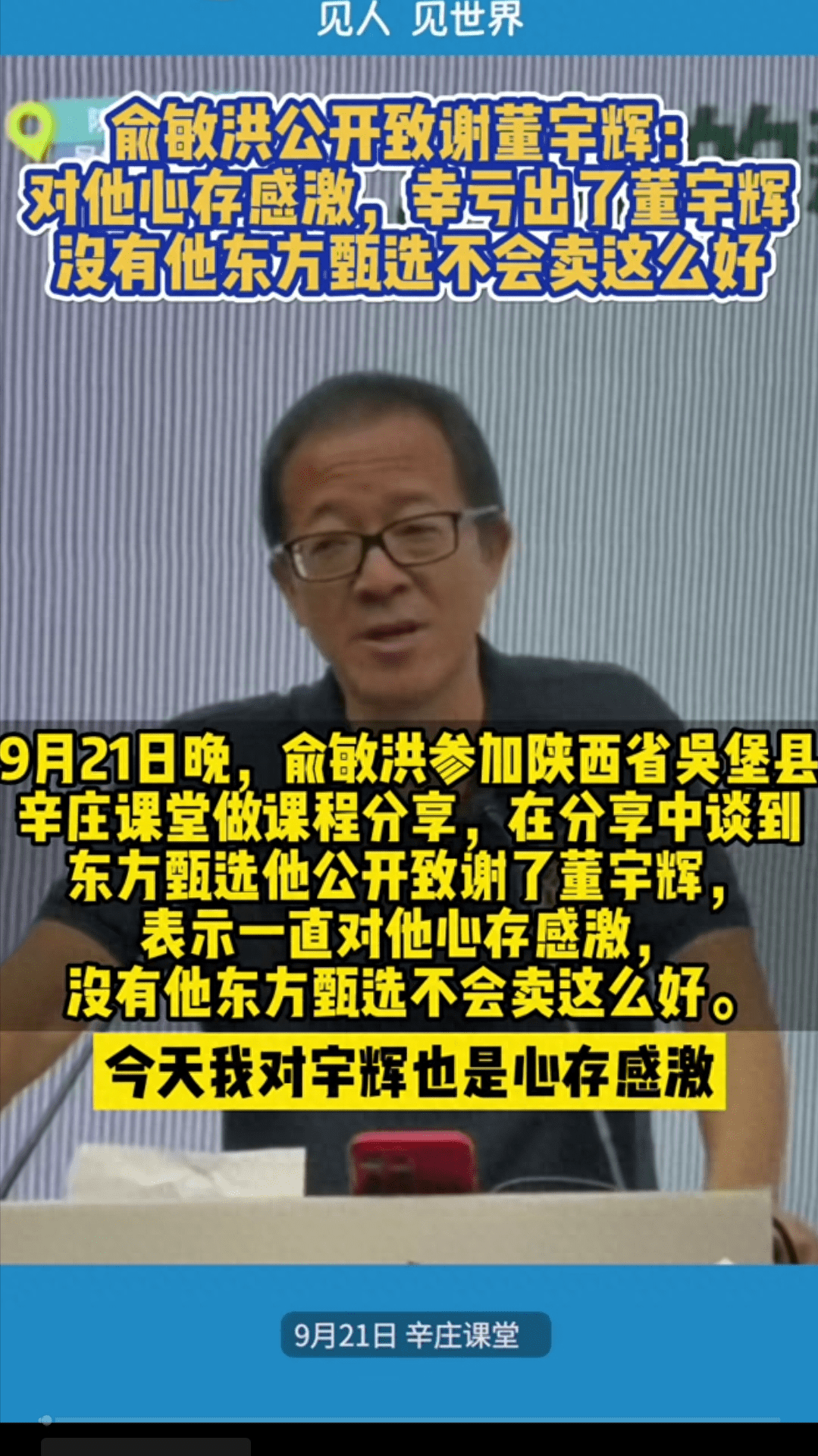 据新华网财经9月22日消息,9月21日俞敏洪在公开课程分享中谈到东方甄选并公开致谢董宇辉。