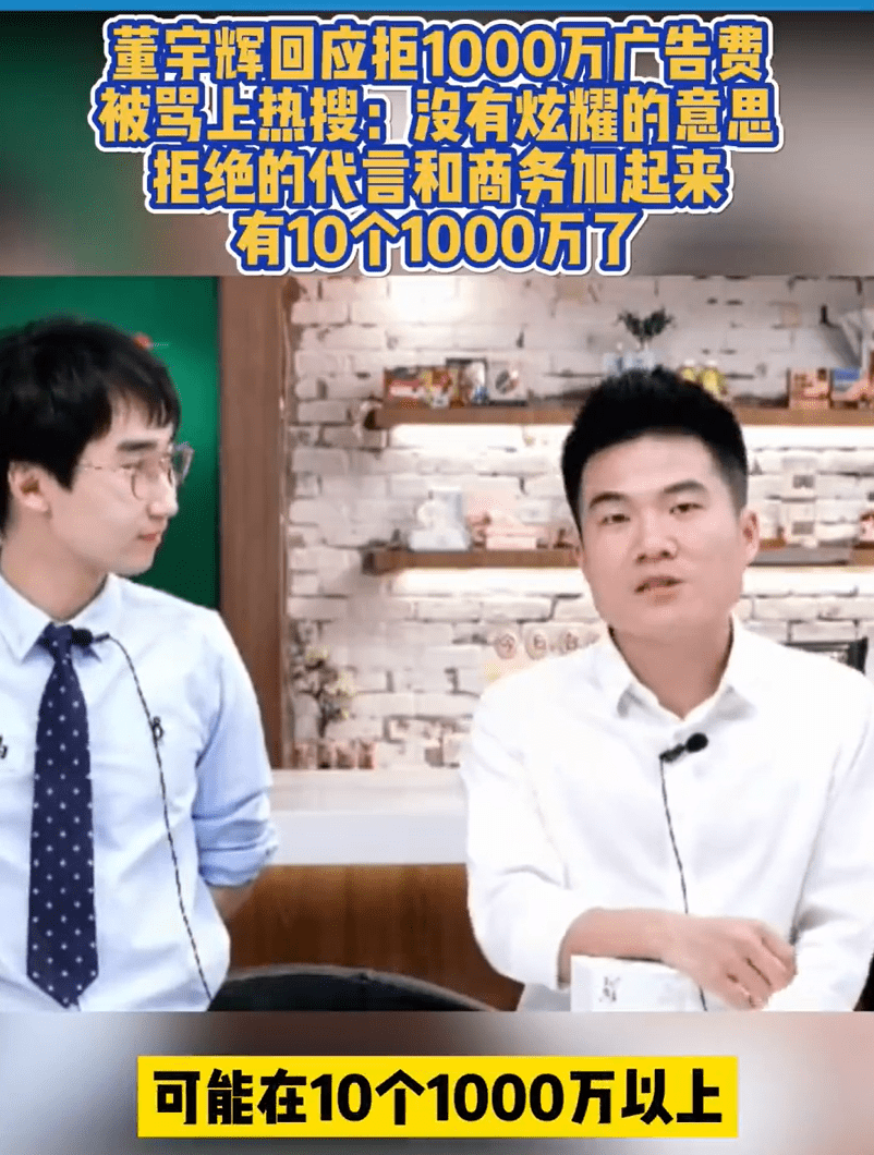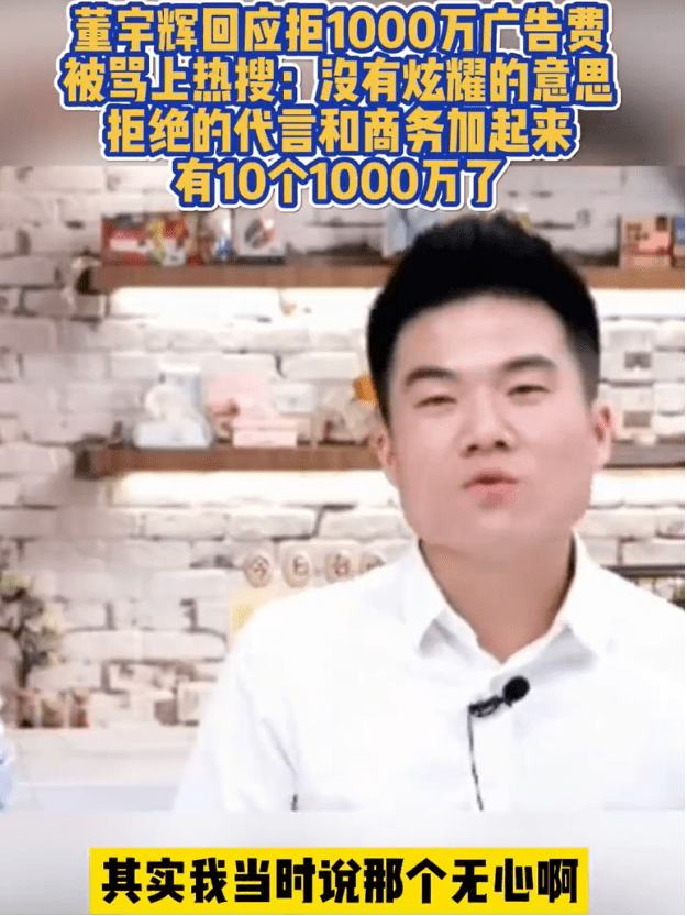 董宇辉曾回应拒绝千万广告费:不是炫耀,近一年或已拒绝超1亿,现在手上都没有1000万