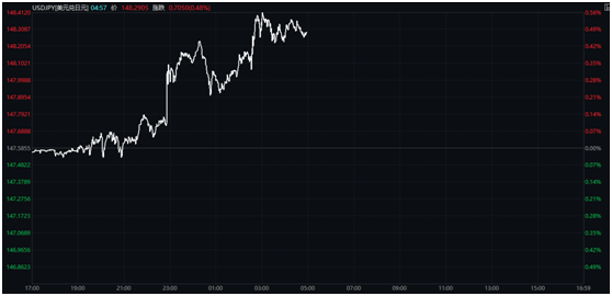 日本央行公布决议后,日元对美元迅速跳水,从147.5855飙升至148.1745,并且接近前期148.47的阶段高点。年初至今,日元对美元贬值幅度已经达到了17%。