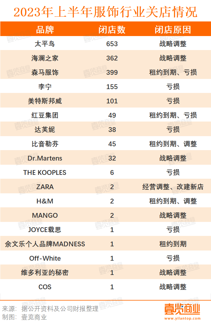 除了国内品牌,国外快时尚品牌的门店数量也在下降,ZARA关闭门店2家、H&M关闭门店2家。