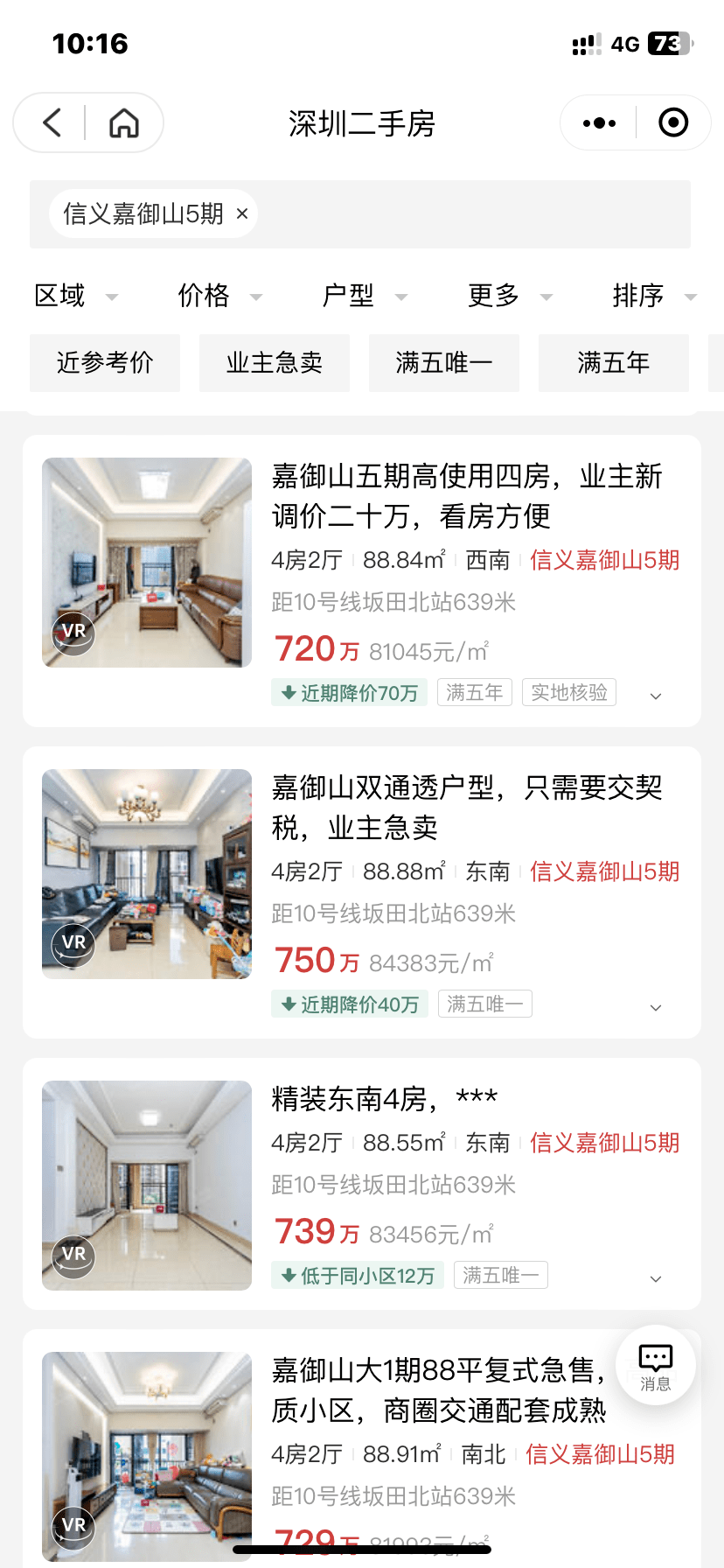 自2021年2月8日参考价政策推出以来,深圳市中介平台常年仅显示二手房源参考价,除非挂牌价低于参考价的情况才会显示挂牌价。