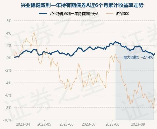 9月22日,兴业稳健双利一年持有期债券A最新单位净值为1.0元,累计净值为1.0元,较前一交易日上涨0.3%。历史数据显示该基金近1个月下跌0.71%,近3个月下跌0.58%,近6个月上涨0.69%,近1年下跌0.01%。该基金近6个月的累计收益率走势如下图: