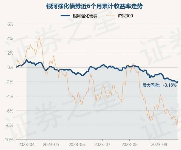 9月22日,银河强化债券最新单位净值为1.04元,累计净值为1.781元,较前一交易日上涨0.29%。历史数据显示该基金近1个月下跌0.95%,近3个月下跌1.7%,近6个月下跌1.89%,近1年下跌3.08%。该基金近6个月的累计收益率走势如下图: