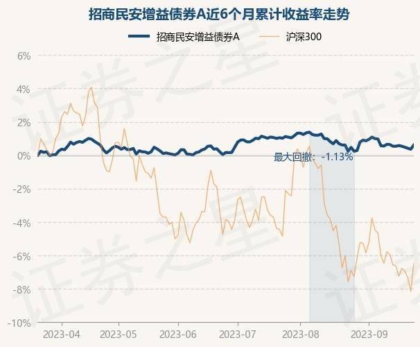 9月22日,招商民安增益债券A最新单位净值为1.1301元,累计净值为1.1301元,较前一交易日上涨0.25%。历史数据显示该基金近1个月上涨0.01%,近3个月上涨0.44%,近6个月上涨0.64%,近1年上涨1.37%。该基金近6个月的累计收益率走势如下图: