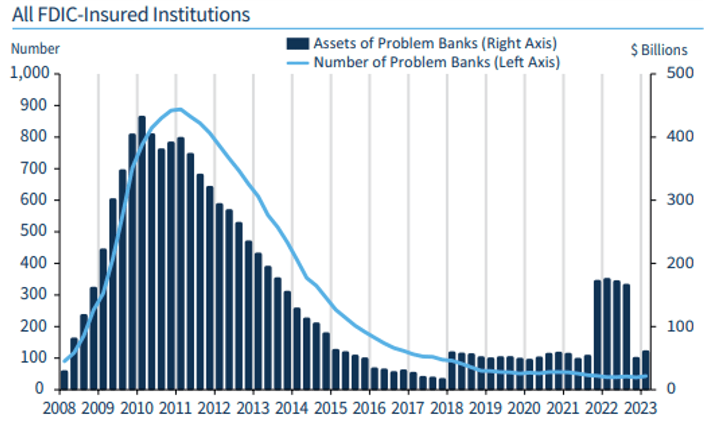 图1 FDIC“问题银行名单”中的银行数量与资产规模