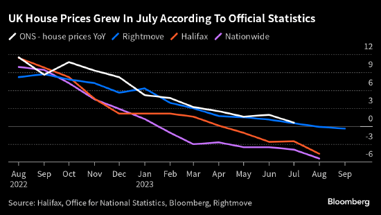 周三的官方数据显示,7月份平均房价较去年11月份的峰值略有回落。抵押贷款机构的数据显示,大多数经济学家预测的房价将下滑10%已实现约一半。