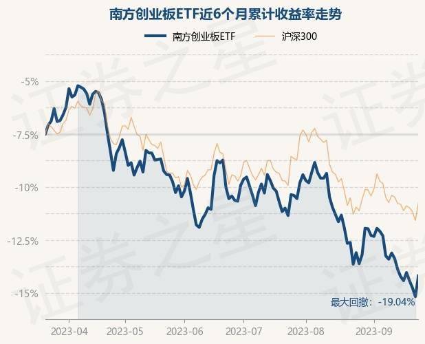 9月22日,南方创业板ETF最新单位净值为2.1659元,累计净值为1.0643元,较前一交易日上涨2.32%。历史数据显示该基金近1个月下跌3.52%,近3个月下跌8.85%,近6个月下跌13.42%,近1年下跌12.56%。该基金近6个月的累计收益率走势如下图: