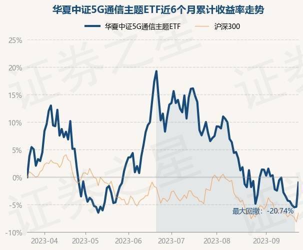 9月22日,华夏中证5G通信主题ETF最新单位净值为0.9321元,累计净值为0.9321元,较前一交易日上涨4.66%。历史数据显示该基金近1个月下跌2.23%,近3个月下跌13.59%,近6个月下跌1.01%,近1年上涨15.76%。该基金近6个月的累计收益率走势如下图:
