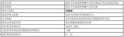 原标题:创金合信稳健增利6个月持有期混合型证券投资基金 基金经理变更公告